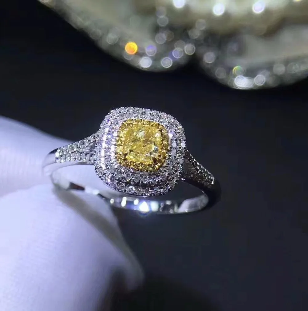 Fine Jewelry Real 18K White Gold Real Natural Yellow Diamond Wedding Engagement Female Rings for Wo